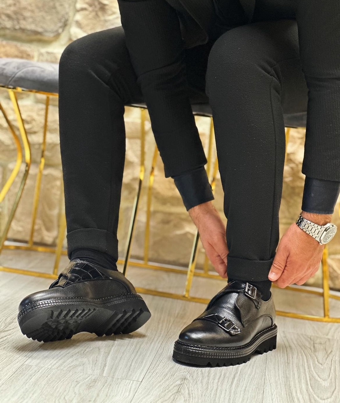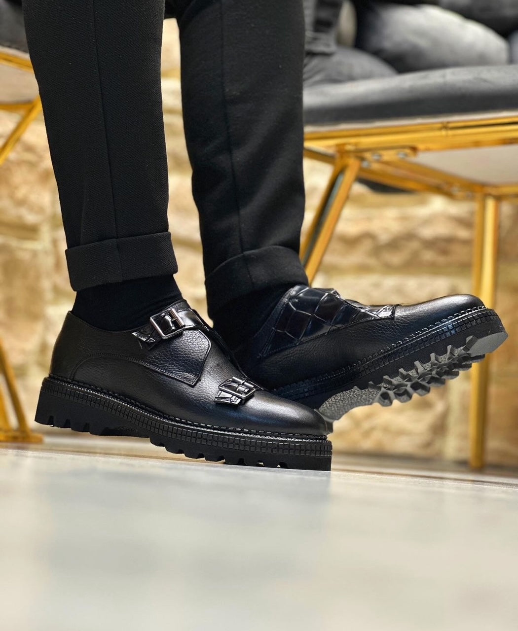 Black genuine leather brongues 012 with clips